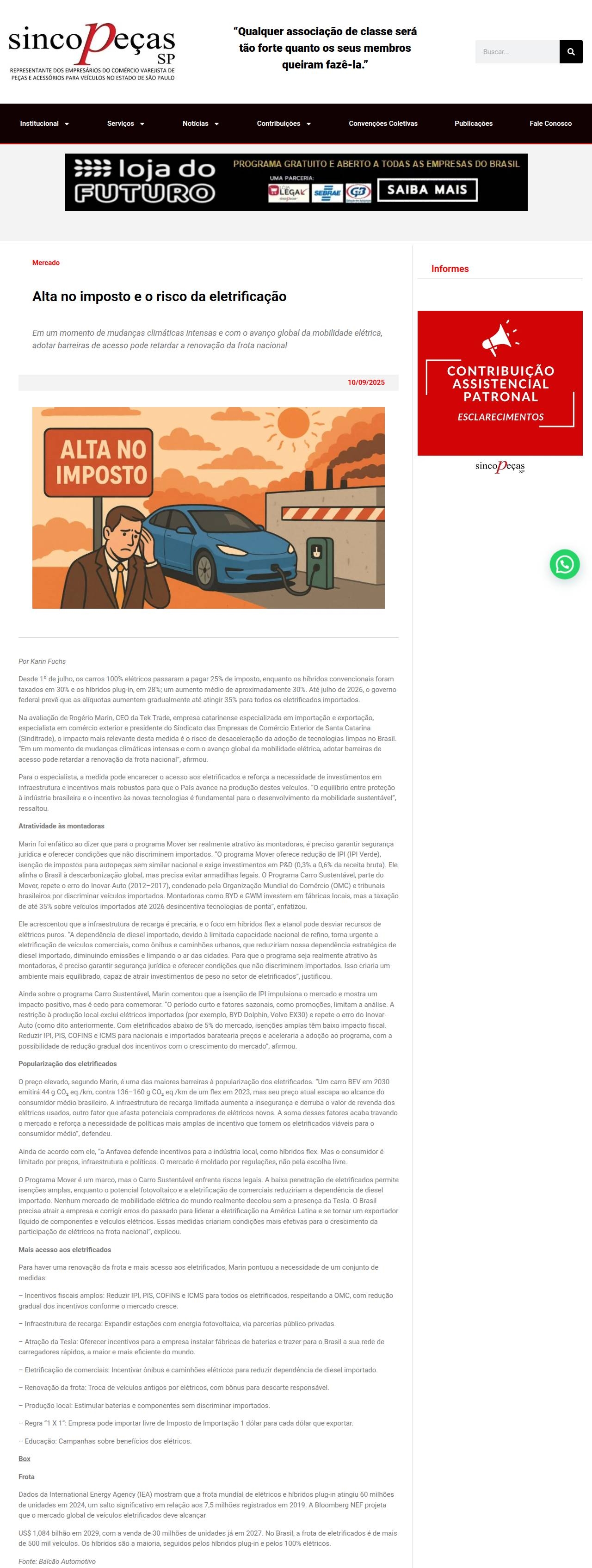 Alta no imposto e o risco da eletrificação - SINCOPEÇAS - SINDICATO DO COMÉRCIO VAREJISTA DE PEÇAS E ACESSÓRIOS PARA VEÍCULOS NO ESTADO DE SÃO PAULO