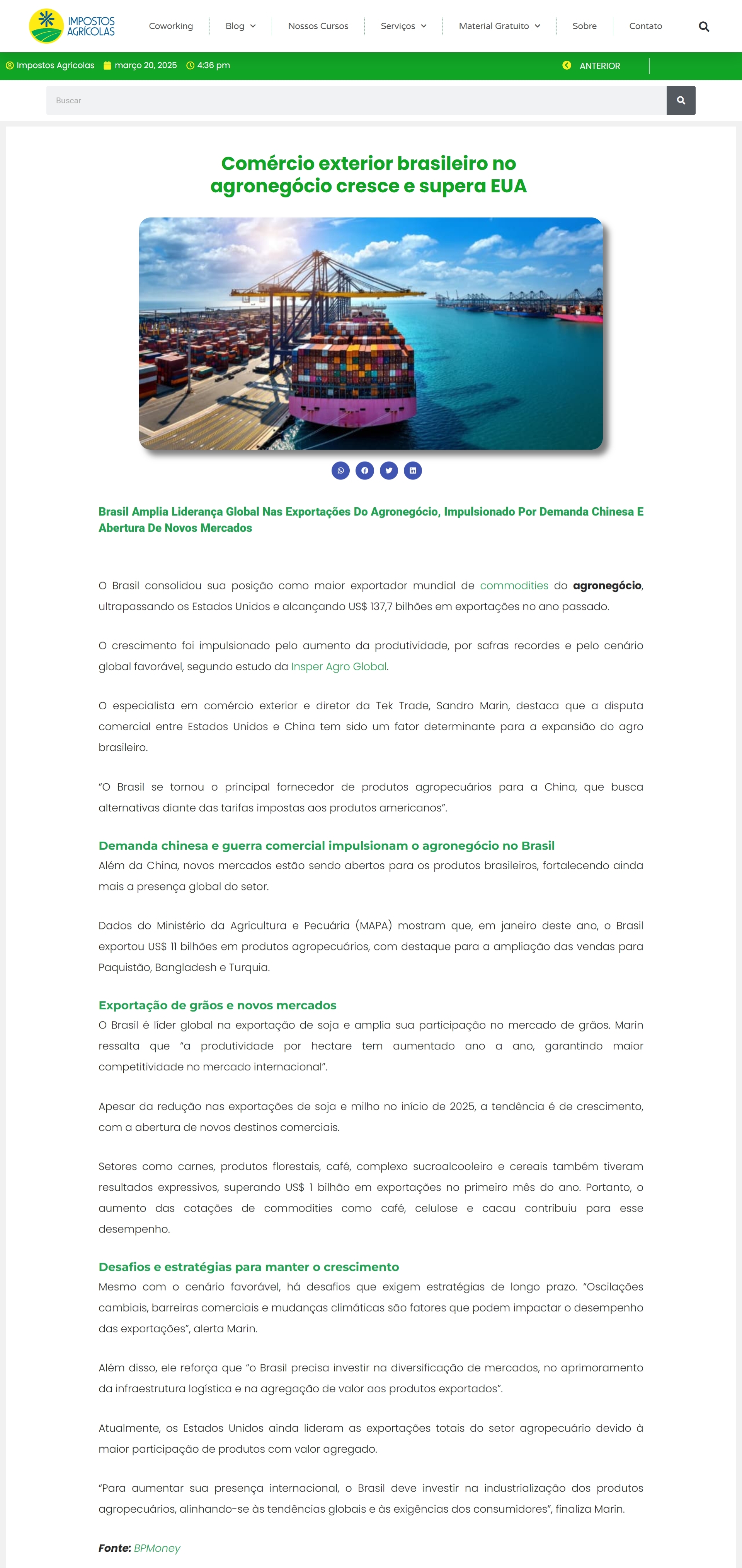 https://www.impostosagricolas.com.br/comercio-exterior-brasileiro-no-agronegocio-cresce-e-supera-eua