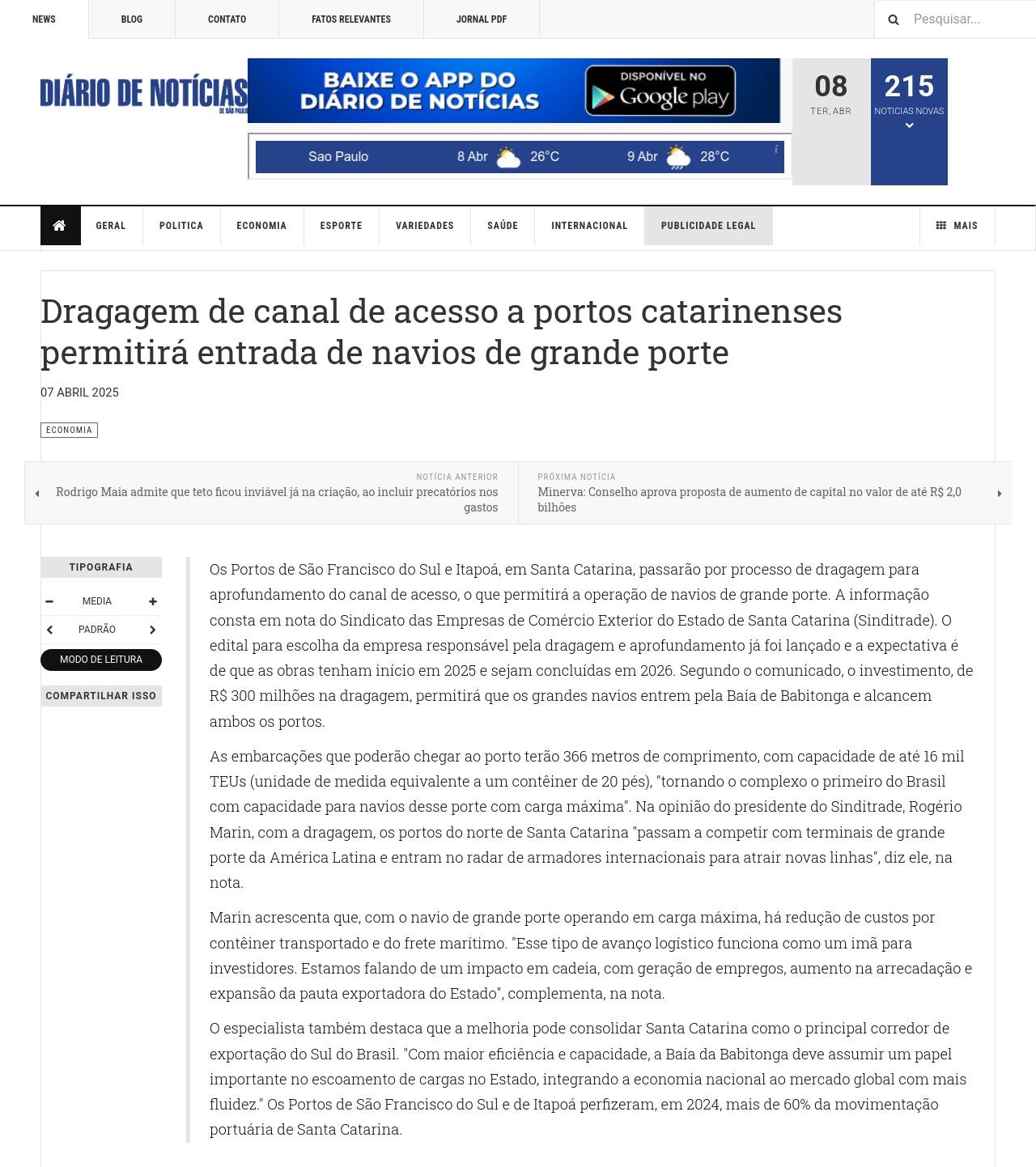 https://www.diariodenoticias.com.br/index.php/77-economia/127065-dragagem-de-canal-de-acesso-a-portos-catarinenses-permitira-entrada-de-navios-de-grande-porte