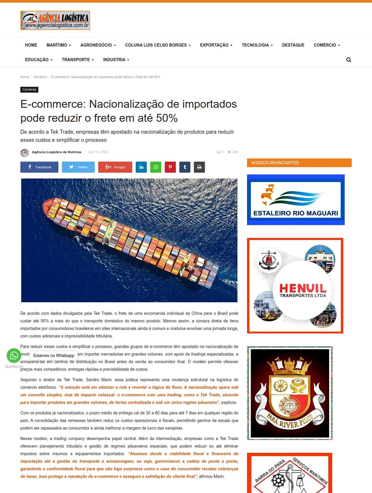 https://www.agencialogistica.com.br/e-commerce-nacionalizacao-de-importados-pode-reduzir-o-frete-em-ate-50
