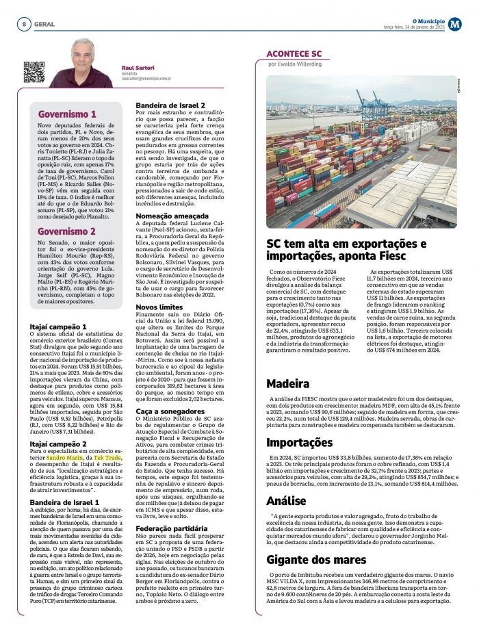 especialista em comércio exterior Sandro Marin, da Tek Trade,o desempenho de Itajaí é resultado