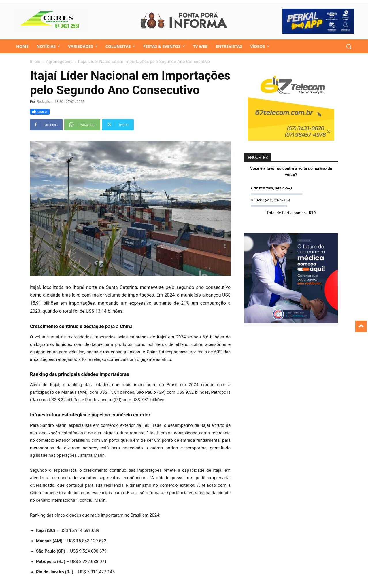 Itajaí Líder Nacional em Importações pelo Segundo Ano Consecutivo - Ponta Porã Informa - Notícias de Ponta