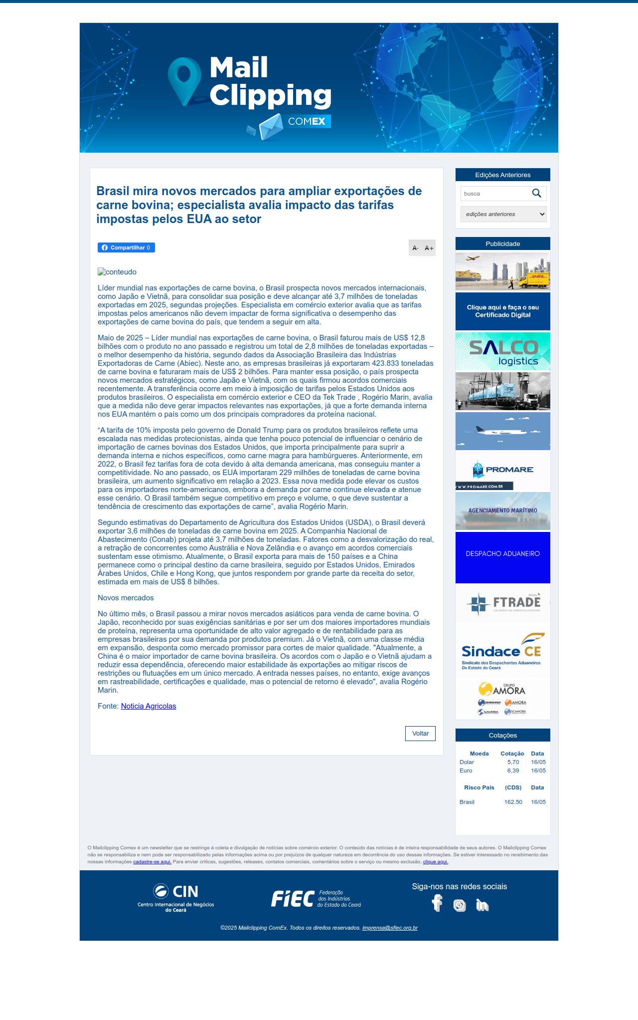 MailClipping CIN Ceará - Informação sobre comércio exterior