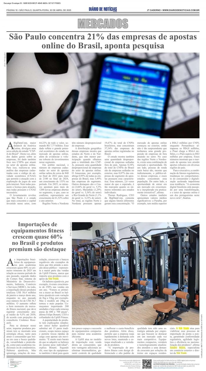 , marca queimporta seus produtos com oapoio da Tek Trade.Os halteres ajustáveis, porexemplo, t