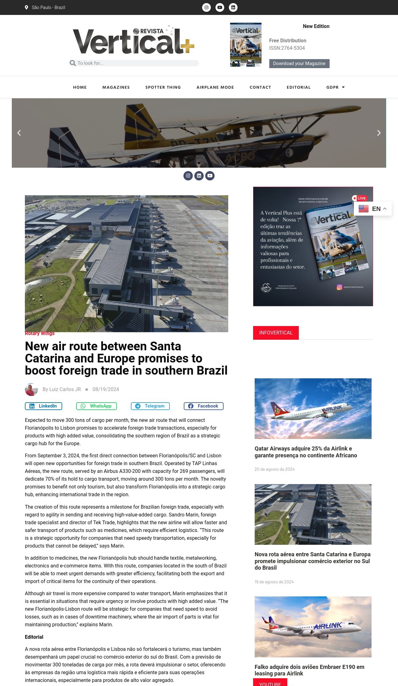 https://revistaverticalplus.com/nova-rota-aerea-entre-santa-catarina-e-europa-promete-impulsionar-comercio-exterior-no-sul-do-brasil