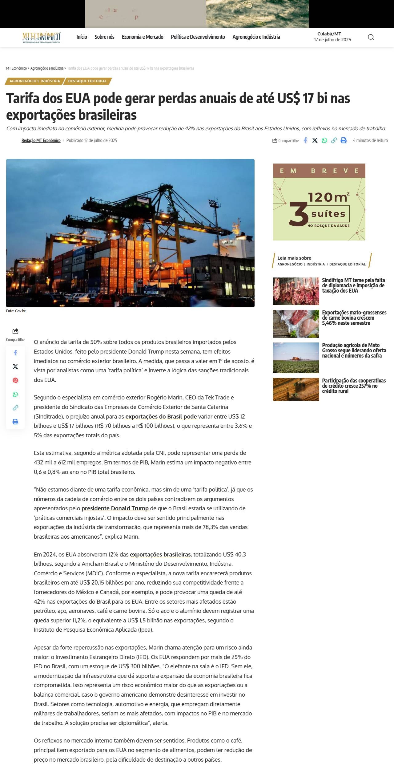 https://matogrossoeconomico.com.br/agronegocio-mato-grosso/tarifa-dos-eua-pode-gerar-perdas-anuais-de-ate-us-17-bi-nas-exportacoes-brasileiras