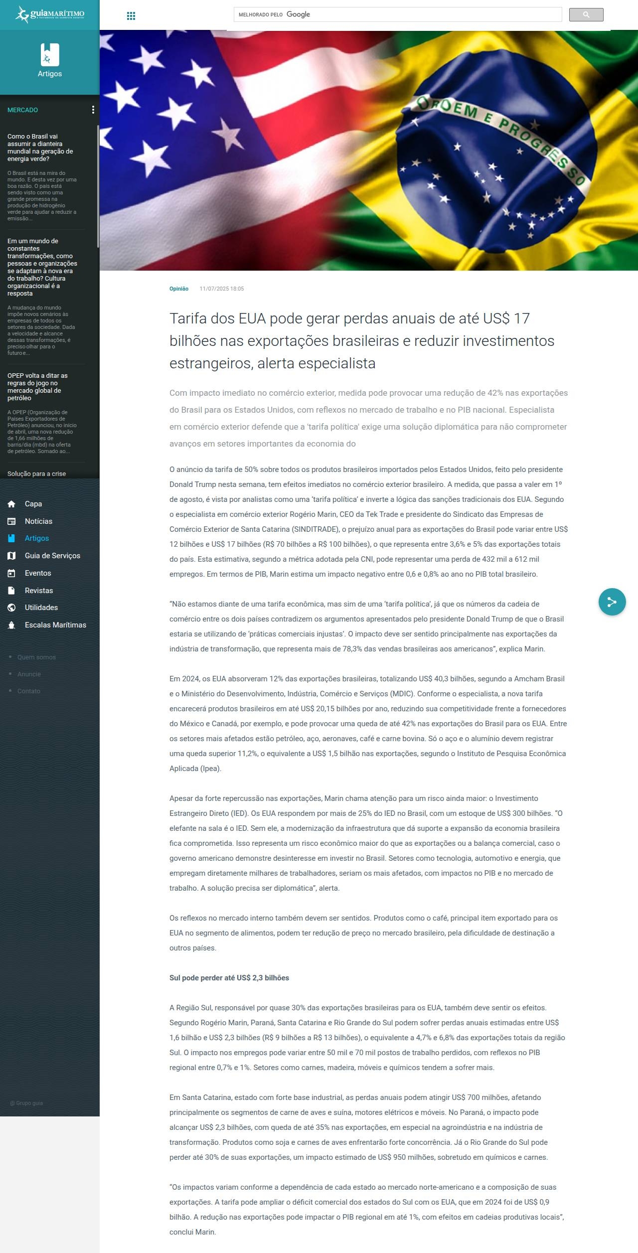 https://www.guiamaritimo.com.br/especiais/mercado/tarifa-dos-eua-pode-gerar-perdas-anuais-de-ate-us-17-bilhoes-nas-exportacoes-brasileiras-e-reduzir-investimentos-estrangeiros-alerta-especialista