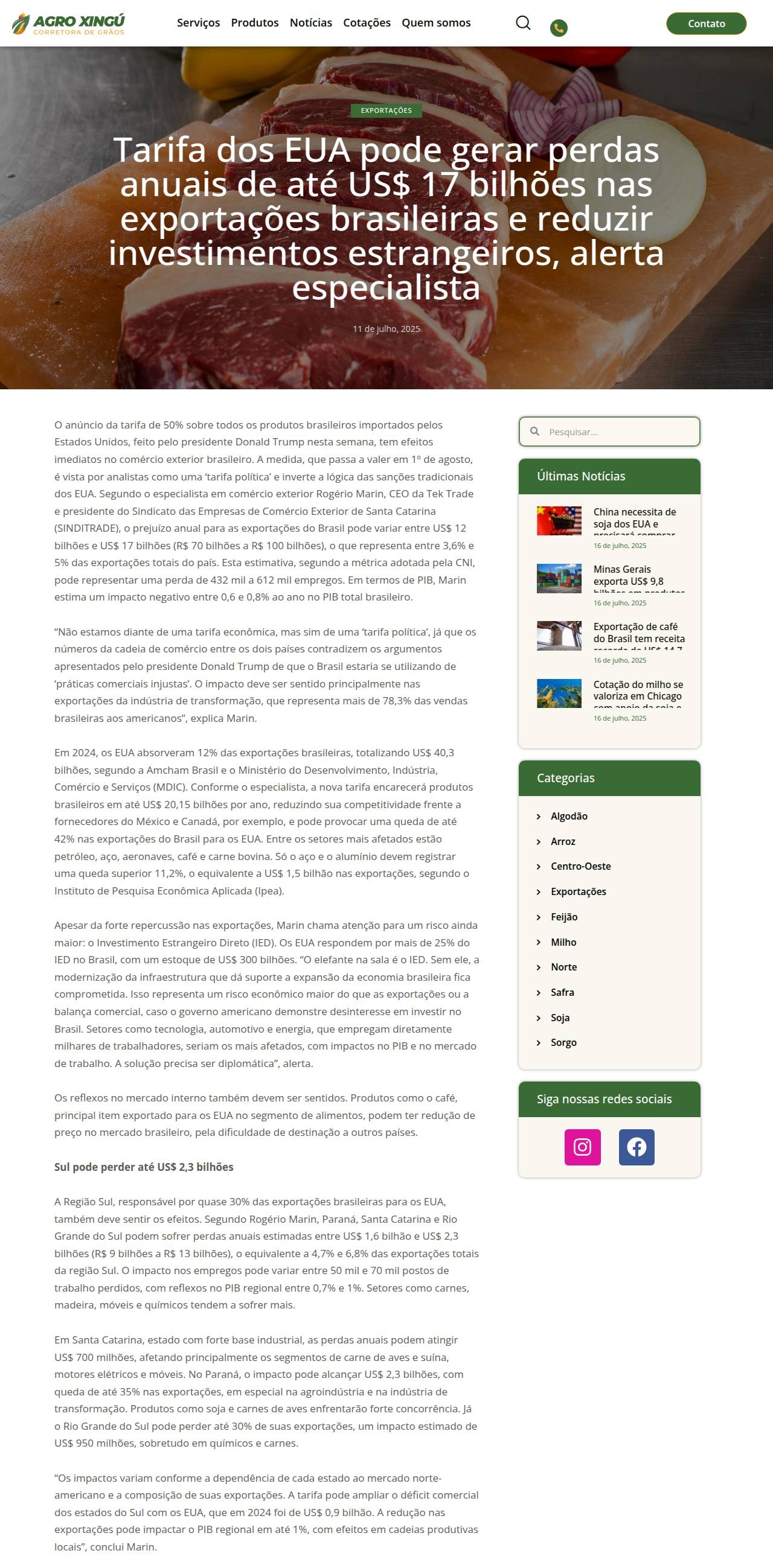 https://agroxingucorretora.com.br/2025/exportacoes/tarifa-dos-eua-pode-gerar-perdas-anuais-de-ate-us-17-bilhoes-nas-exportacoes-brasileiras-e-reduzir-investimentos-estrangeiros-alerta-especialista