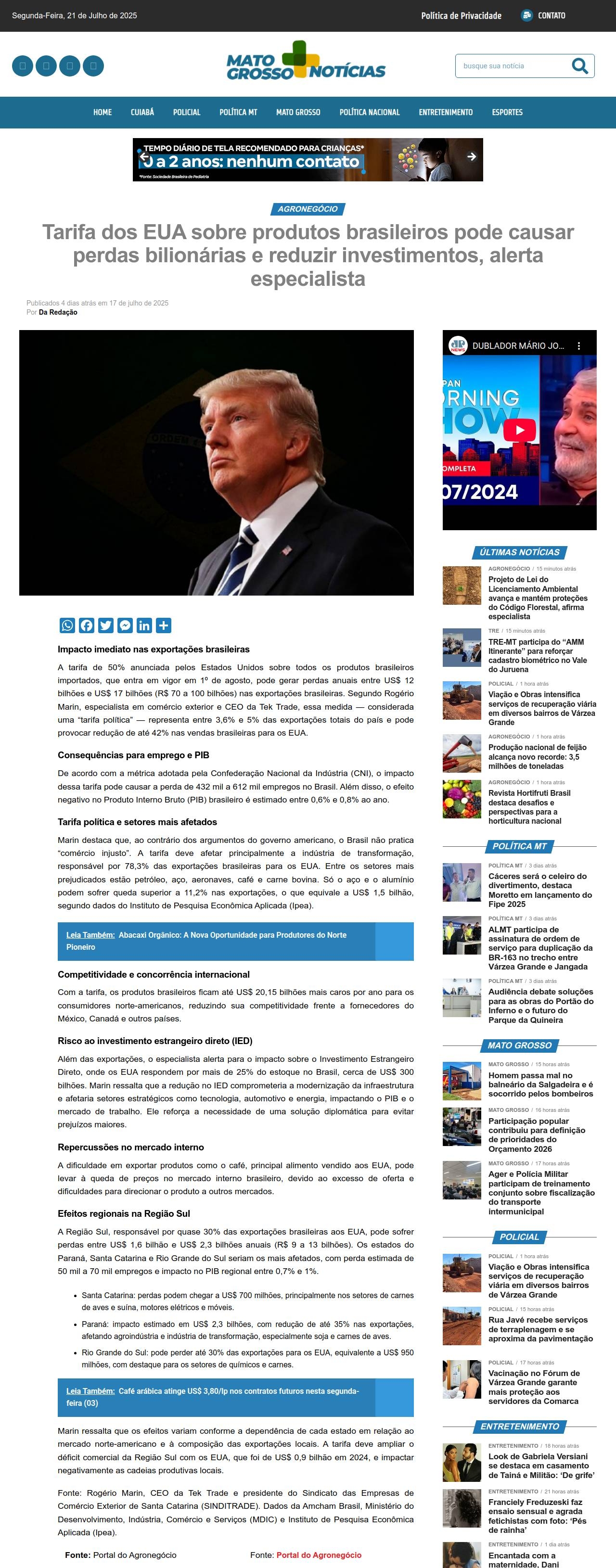https://www.matogrossomaisnoticias.com.br/agronegocio/tarifa-dos-eua-sobre-produtos-brasileiros-pode-causar-perdas-bilionarias-e-reduzir-investimentos-alerta-especialista