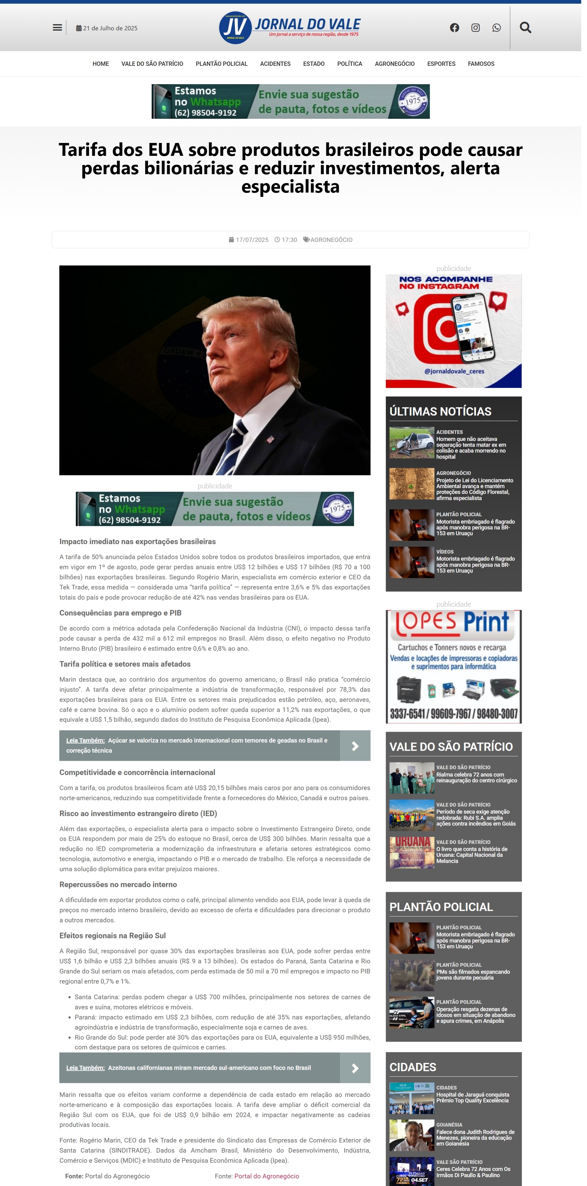 https://jornaldovale.com/tarifa-dos-eua-sobre-produtos-brasileiros-pode-causar-perdas-bilionarias-e-reduzir-investimentos-alerta-especialista