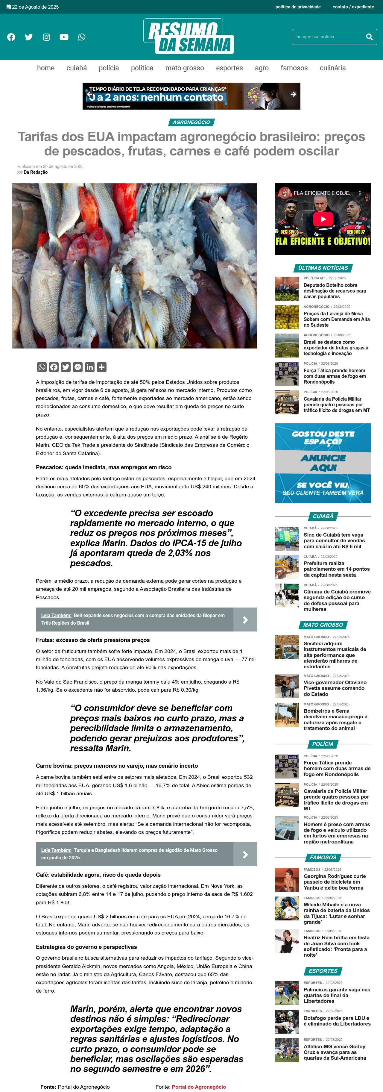 https://resumodasemana.com.br/agronegocio/tarifas-dos-eua-impactam-agronegocio-brasileiro-precos-de-pescados-frutas-carnes-e-cafe-podem-oscilar