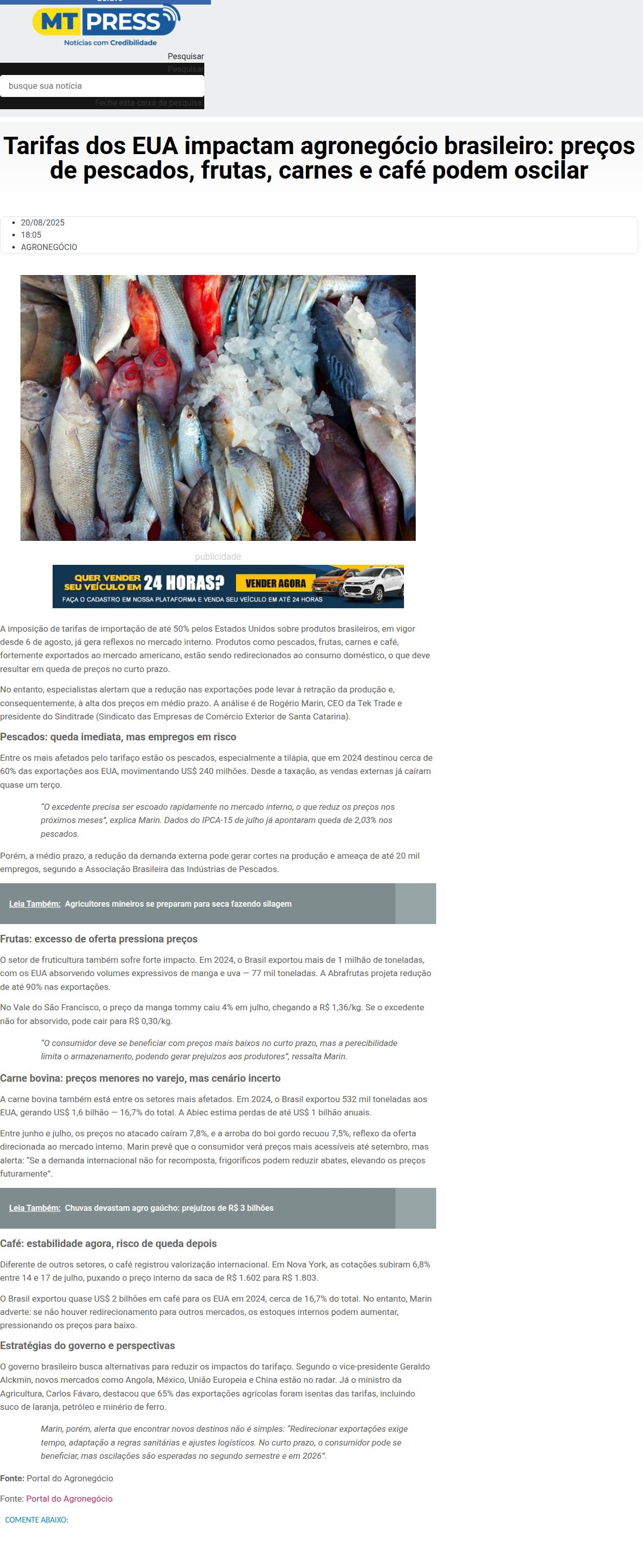 https://mtpress.com.br/agronegocio/tarifas-dos-eua-impactam-agronegocio-brasileiro-precos-de-pescados-frutas-carnes-e-cafe-podem-oscilar