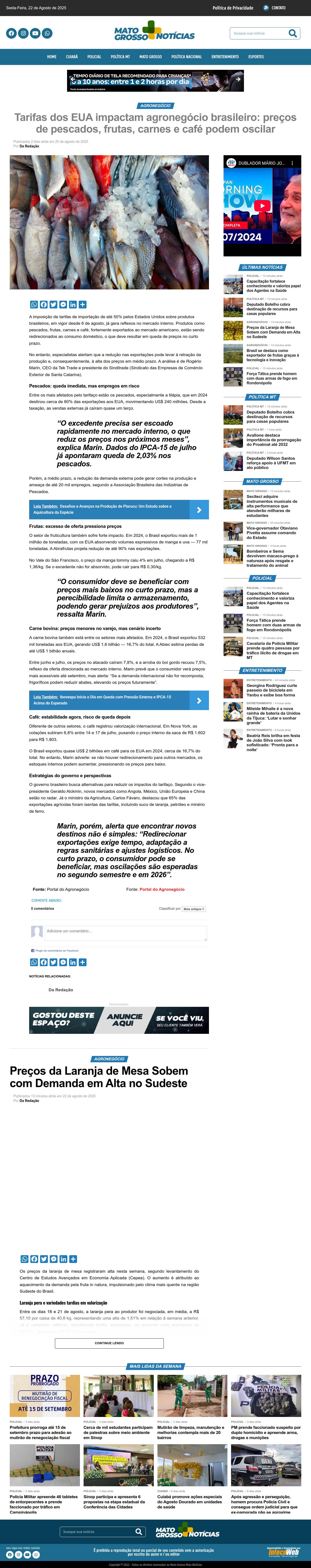https://www.matogrossomaisnoticias.com.br/agronegocio/tarifas-dos-eua-impactam-agronegocio-brasileiro-precos-de-pescados-frutas-carnes-e-cafe-podem-oscilar