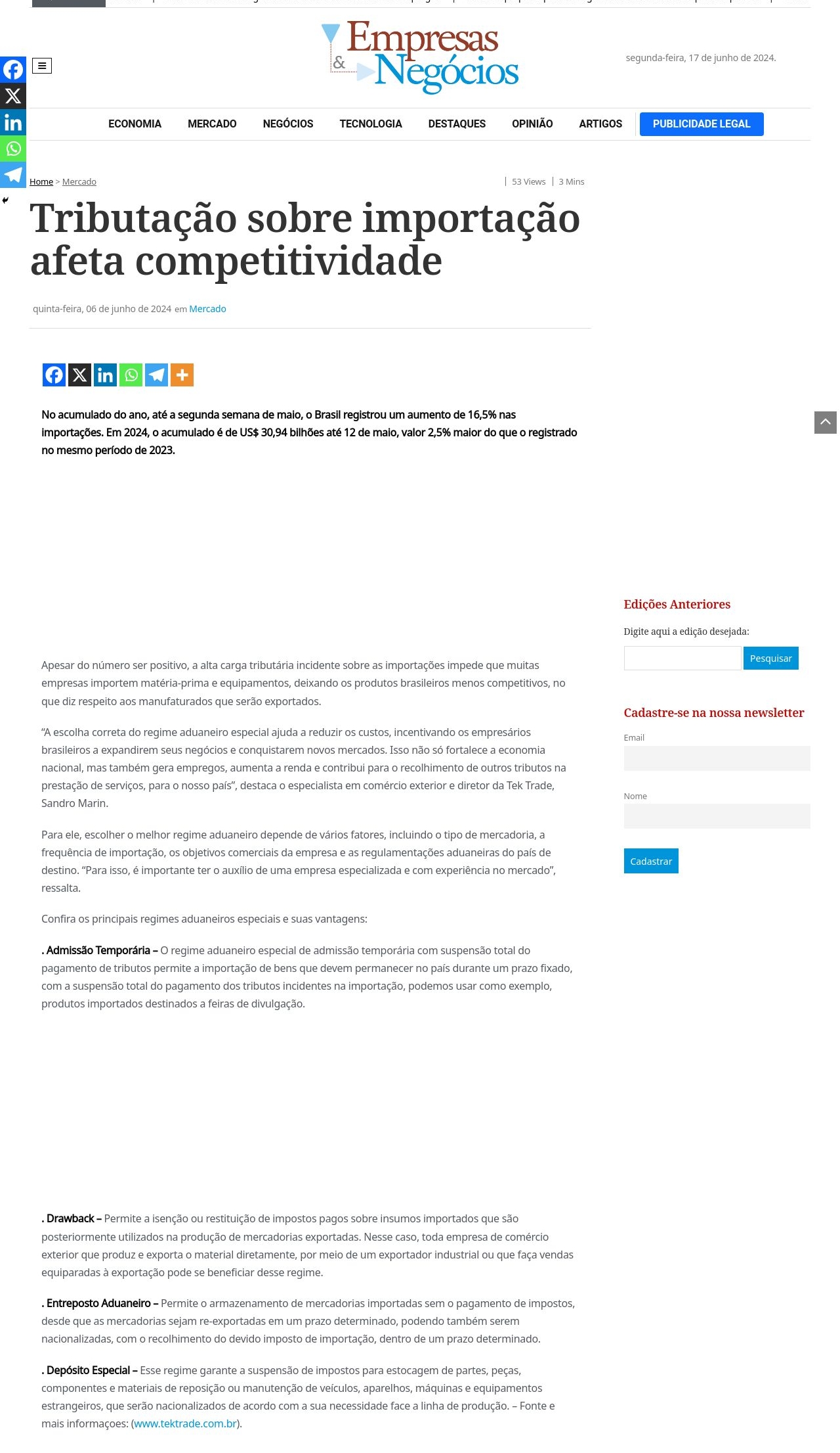 06/06/2024 - Empresas & Negócios